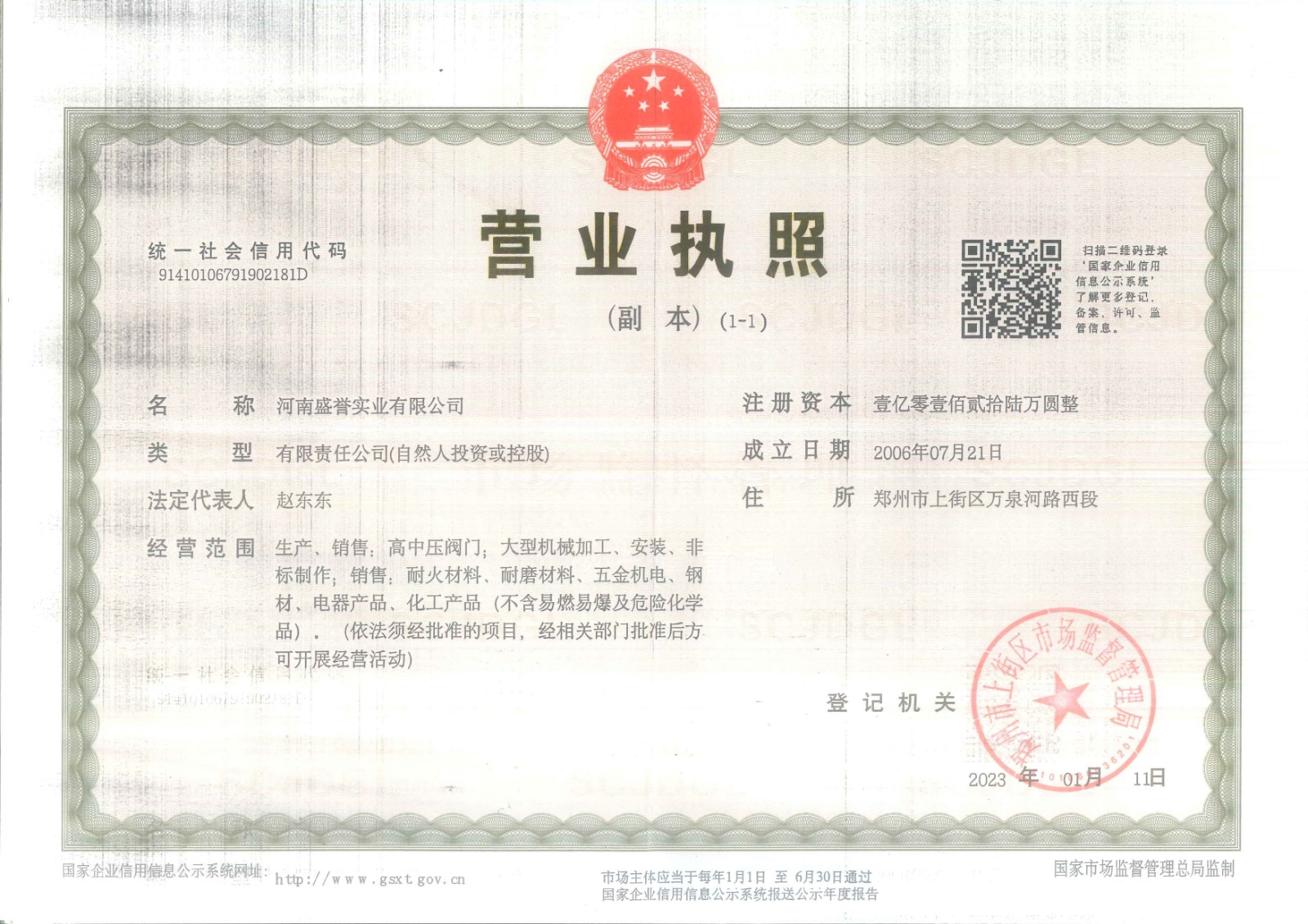 河南盛誉实业有限公司位于素有"阀门之乡、"中国铝都"之称的中铝矿业有限公司暨中铝郑州轻金属研究院所在地郑州市上街区,有着20多年的阀门生产历史,公司紧邻连霍高速、郑西高铁、310国道在公司门前穿过,交通运输十分便捷。得天独厚的区位优势和技术优势为我公司的健康发展增添了强劲动力。公司厂区占地5万㎡,年销售输入近1亿5千万元,固定资产近2亿6千万元。公司现有员工150人,其中高中级技术人员80人;设有郑州市工程技术中心,具有独立设计开发生产能力。生产、检测设备先进完善,确保产品性能先进可靠。我公司生产的Y型料浆阀和放料阀系列、耐磨陶瓷阀系列、半球阀系列、双相智能换向器、溜槽闸阀等产品先后获得80余项实用新型及发明专利,并有多项专利申报待批中。公司取得中华人民共和国特种设备制造许可证,通过ISO9001质量管理体系认证、ISO14001环境管理体系认证,ISO45001职业健康安全管理体系认证;并获评河南省高新技术企业、河南省名牌产品、河南省著名商标、河南省科技型中小企业、专精特新企业、区长质量奖等众多荣誉。